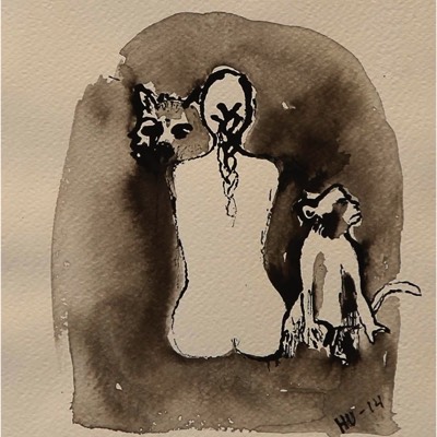 Madonna, huora tai jotakin muuta,Madonna, hora eller något annat,Madonna, whore or something else, Aquarelle and ink on paper 39*30cm