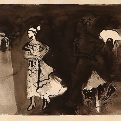 Lammas ja tanssi, Lammet och dansen, The lamb and the dance, Aquarelle and ink on paper 39*30cm