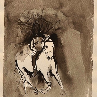 Villi ratsastajatar, Vild ryttarinna, Wild rider, Aquarelle and ink on paper 39*30cm