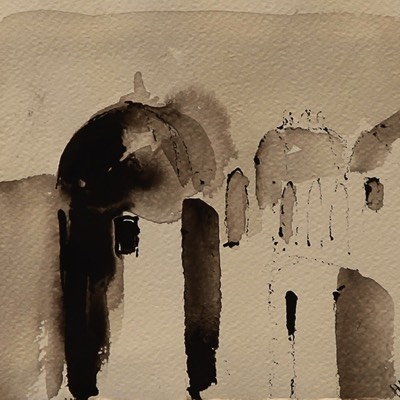 Temppeli, Tempel, The temple, Aquarelle and ink on paper 39*30cm