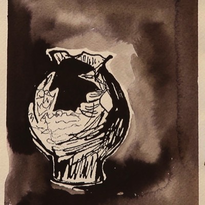 Rikkinäinen ruukku, Den söndriga krukan, The broken jar, Aquarelle and ink on paper 39*30cm